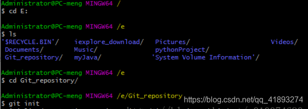 2.进入到指定文件目录并通过init命令创建仓库(注意本地一个仓库对应与github上的一个仓库,可以使用 git remote查看当前的远程库)