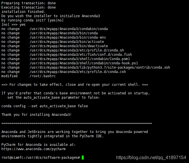 输入想要安装Anaconda3的位置/usr/dcs/myapp/Anaconda3