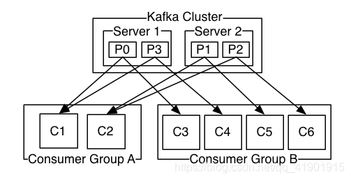 - 故障容灾,如果一个消费者组中的一个消费者故障了,其它消费者仍然可以消费所有的分区。