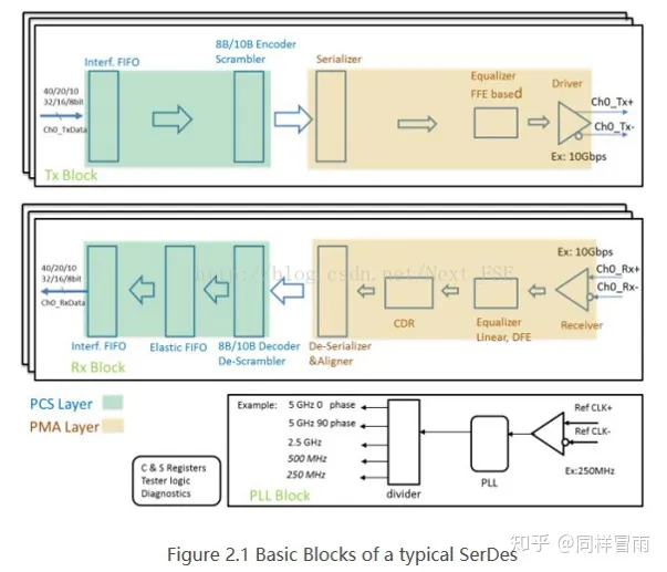由于串行信号速率太高,必须有信号均衡Equalizer技术来保证信号完整性。