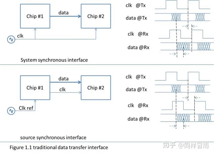 在SerDes流行之前,芯片之间的互联通过系统同步或者源同步的并行接口传输数据。