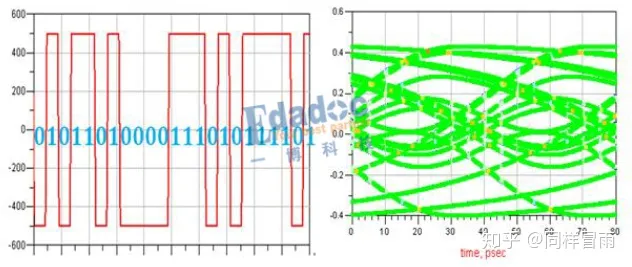 再举一个例子,无FFE均衡时发送波形和接收眼图如下:
