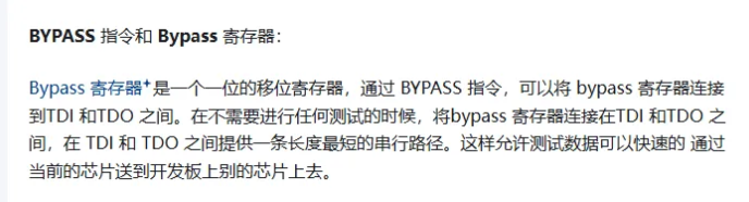 通过查看JTAG IEEE 1149.1协议标准,可以看到对bypass指令及寄存器的介绍: