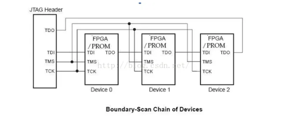 上图是一个串联cpld的线路拓扑结构,可以看到TDI和TDO串联,TMS和TCK并联的一种特殊结构。相信各位的硬件设计也是如此,如果采用的是TDI并联的模式,那么本文不适用。