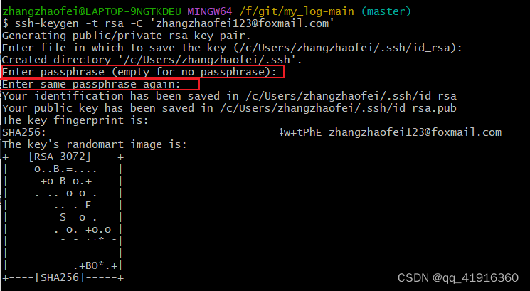 $ ssh-keygen -t rsa -C 'zhangzhaofei123@foxmail.com'
