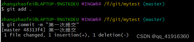 (2)git commit 将暂存区内容添加到本地仓库中,然后提交