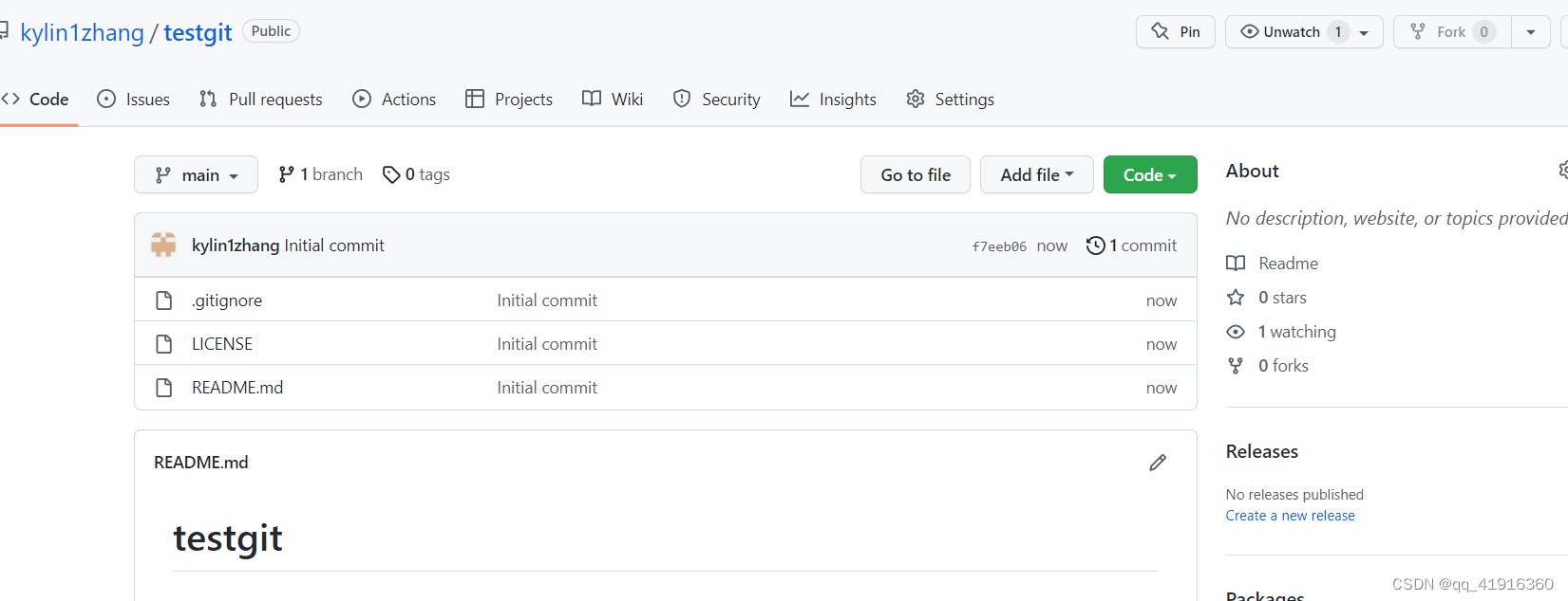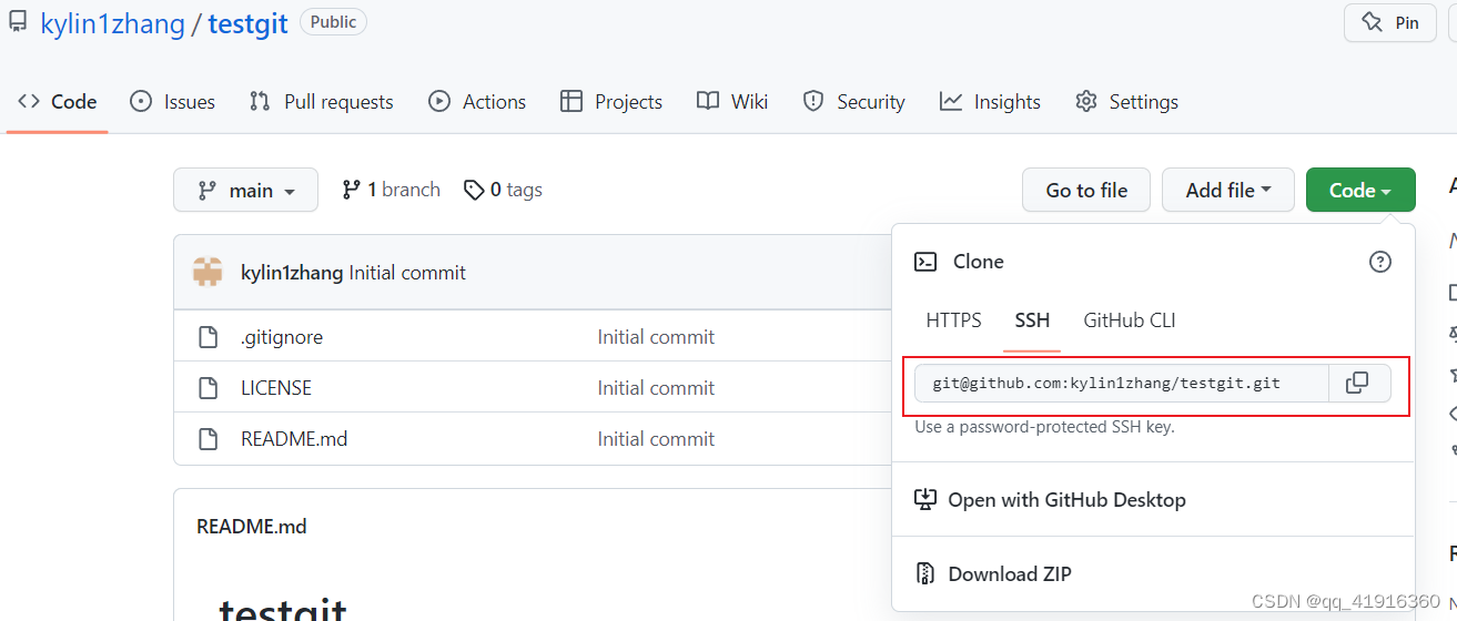 $ git remote add origin git@github.com:kylin1zhang/testgit.git