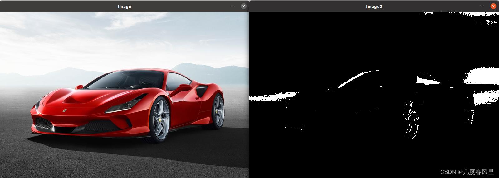 cv::threshold()函数创建一个二值图像。这个函数通常用于将所有像素与某个阈值(第三个参数)进行比较,在常规阈值化模式 (CV::THRESH_BINARY)下,将所有大于指定阈值的像素赋值为预定的最大值(第四个参数),将其他像素赋值为 0。