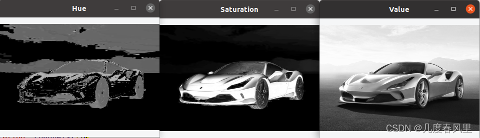 独立的图像中,我们可以,直观地看到每一种 HSV组件,方法如下所示: