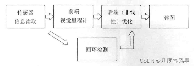 - 前端视觉里程计( Visual Odometry,vo)。视觉里程计的任务是估算相邻图像间相机的运动,以及局部地图的样子。VO 又称为前端 ( Fron