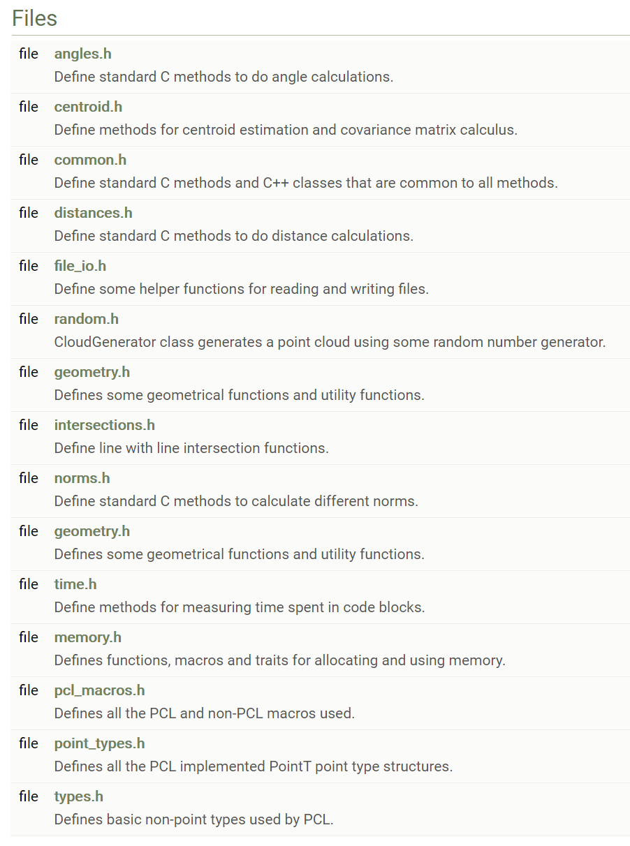 | Point_types | 定义了所有PCL实现的点云的数据结构的类型 |