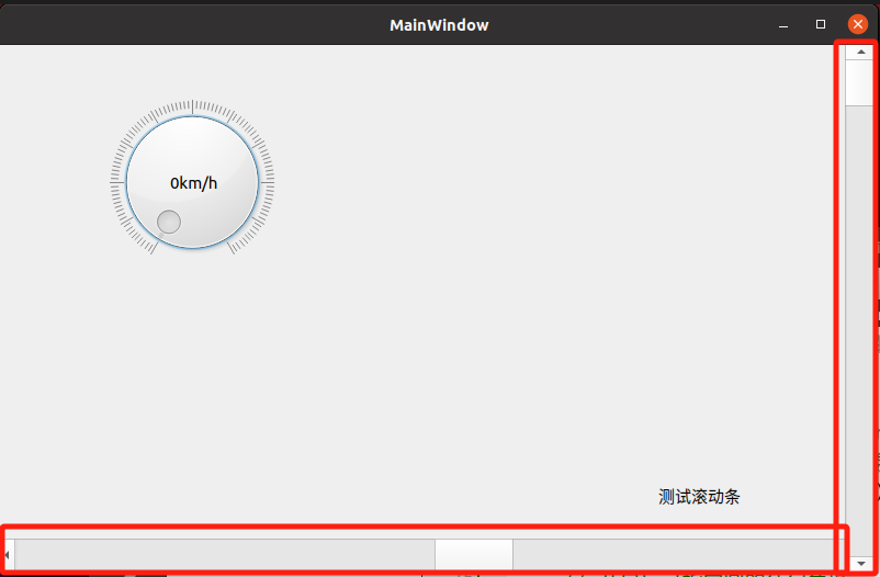 创建水平和垂直滚动条,使用 QScrollBar 类实例化两个控件,一个是水平滚动条,另一个是垂直滚动条,中间用一个标签文本来显示。