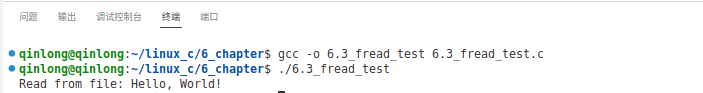 程序首先以读写模式打开一个名为"example.txt"的文件,然后向其中写入字符串"Hello, World!"。之后,程序将文件指针重置到文件开头,从文件中读取相同数量的数据到一个缓冲区,并确保字符串以空字符结尾,最后打印读取的字符串并关闭文件。程序还包括了基本的错误检查,以确保文件操作成功完成。程序运行结果如下: