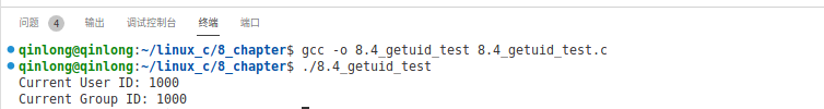 - 返回值:返回当前进程的实际用户 ID。如果发生错误,返回 -1 并设置