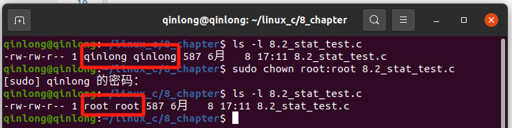 通过chown 该命令确实可以改变文件的所有者和所属组,这个命令内部其实就是调用了chown 函