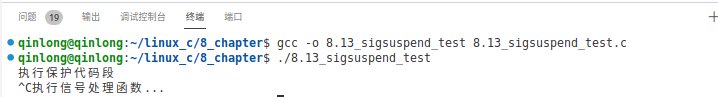 使用 sigaction 函数注册了 sig_handler 函数来处理 SIGINT 信号。然后,程序通过 sigprocmask 函数设置 new_mask 为当前信号掩码,以阻塞 SIGINT 信号。接下来,程序执行一个保护代码段,之后调用 sigsuspend 挂起,直到接收到 SIGINT 信号。一旦信号到达,sig_handler 函数被执行,然后程序从 sigsuspend 返回并恢复原始的信号掩码,最后正常退出。