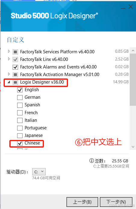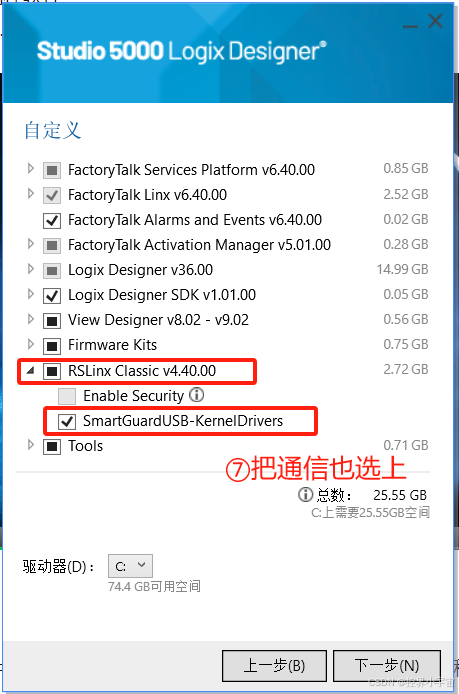 - 安装路径:默认路径为C:\Program Files\Rockwell Automation\Studio 5000 Web,若 C 盘空间不足,点击 “更改” 选择其他分区(需满足 2 个条件:①路径无中文;②分区剩余空间≥30GB),确认后点击 “下一步”。
