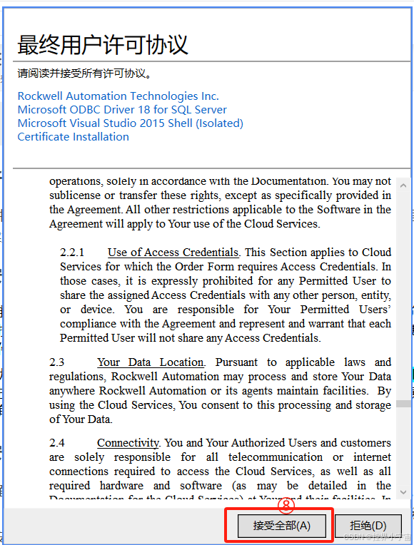 阅读罗克韦尔软件许可协议,勾选 “我接受许可协议中的条款”,点击 “下一步”。这里建议快速浏览 “免责声明”,了解软件使用范围和版权要求。