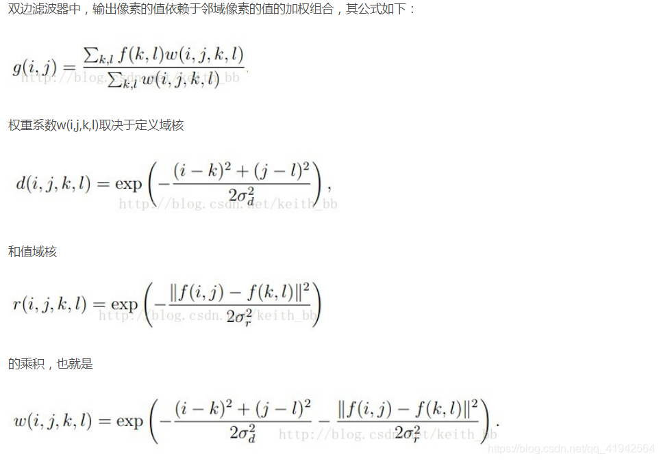 双边滤波的核函数是空间域核与像素范围域核的综合结果: