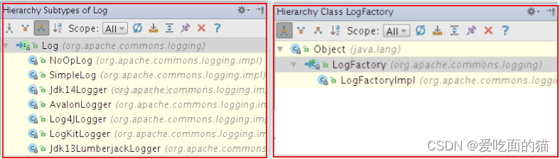 通过源码 及 Log 的继承体系与 LogFactory 的继承体系我们发现,Log接口的4个实现类