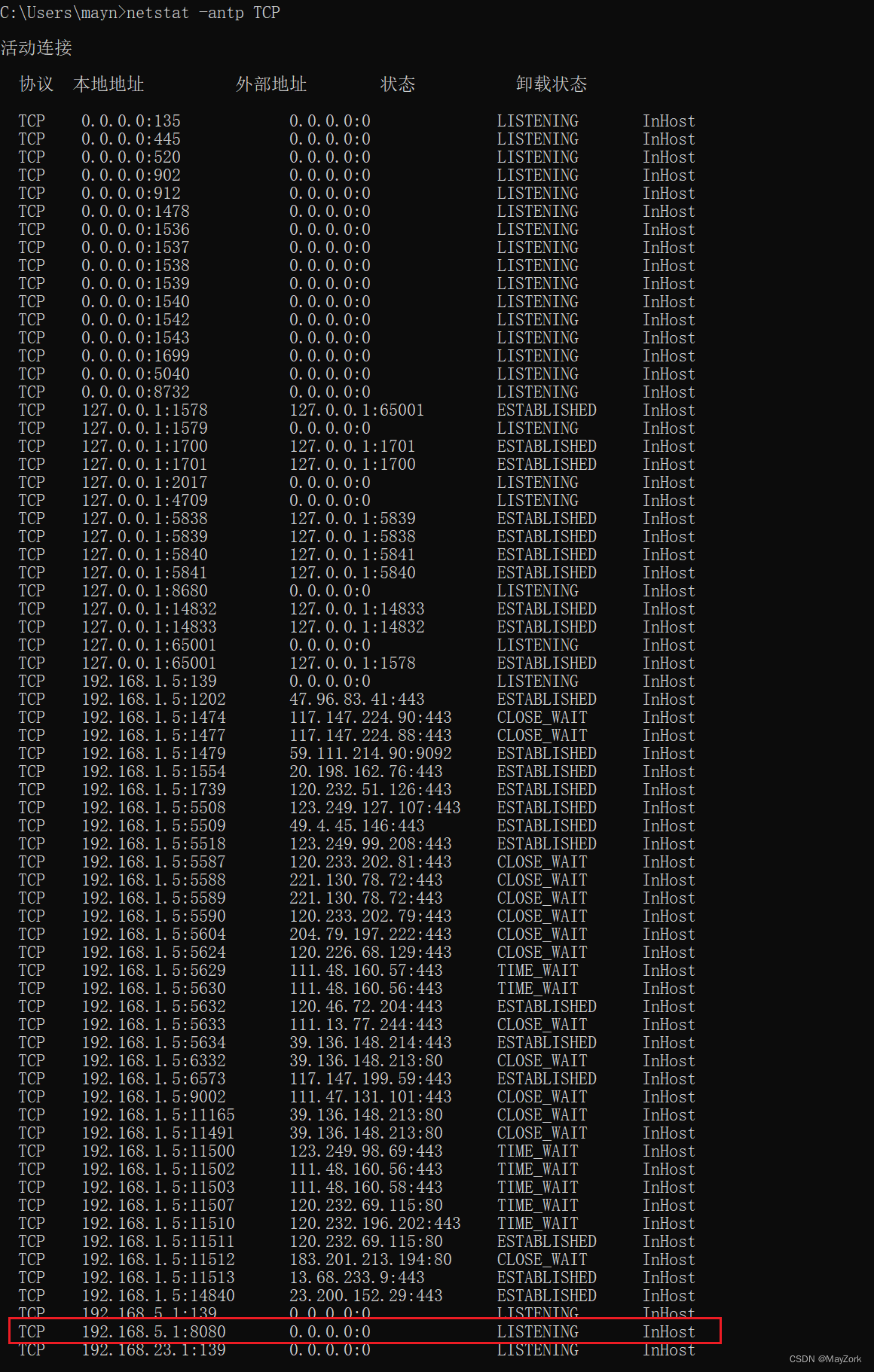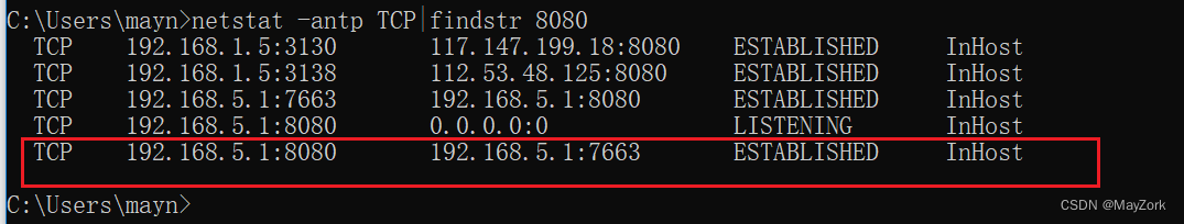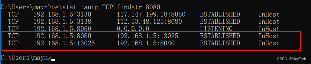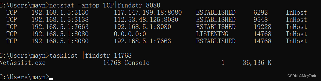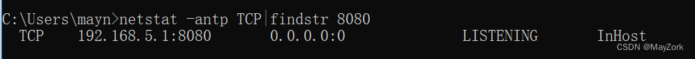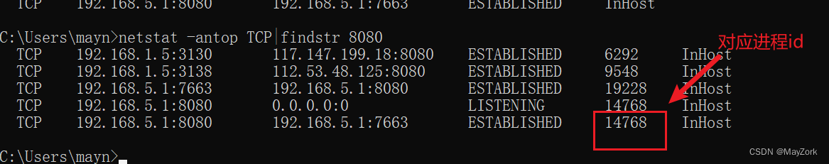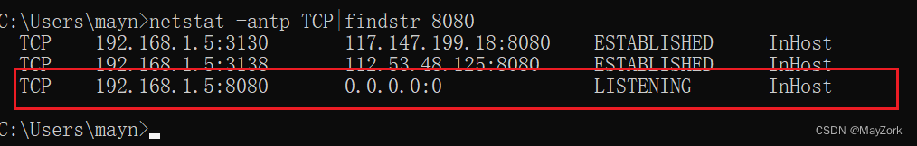 或者直接输入命令 netstat -antp TCP|findstr 8080: