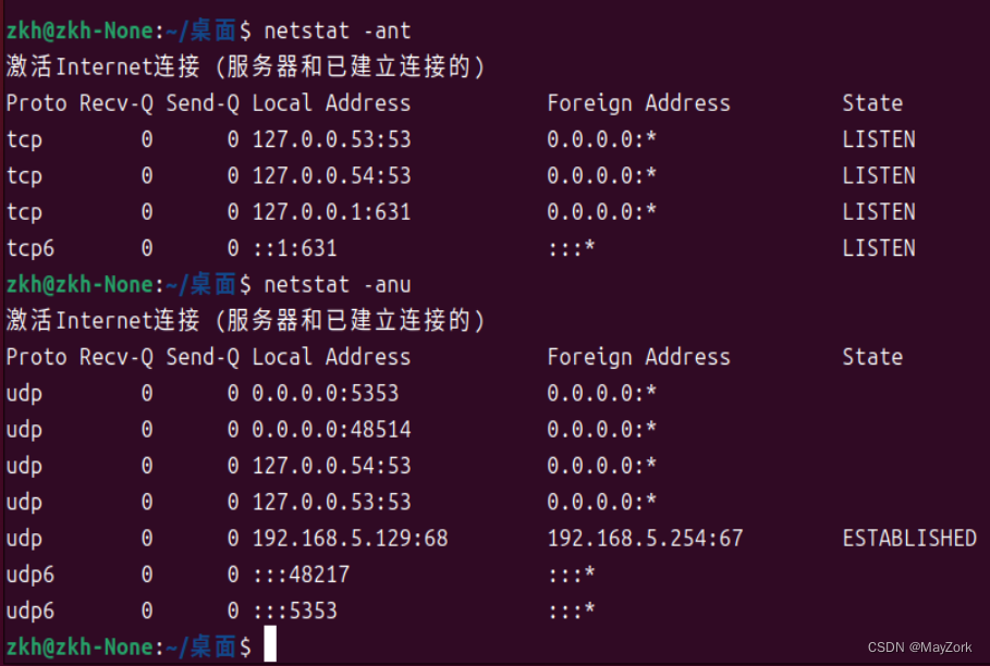 Linux 的netstat的命令指定对应协议不需要 -p TCP或者-p UDP,而是-t就是TCP,-u就是UDP,如下图所示: