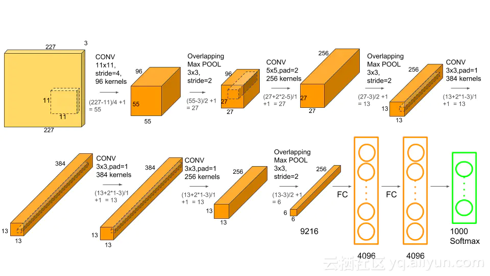 通常cnn网络在卷积之后会接上若干个全连接层,将卷积层产生的特征图(feature map)映射成为一个固定长度的特征向量,最后得到输入图像的分类的概率。