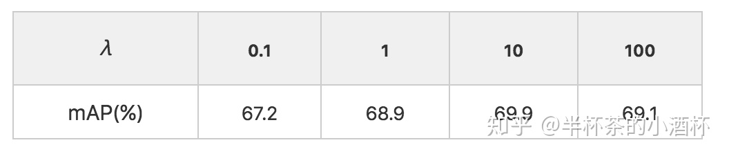 如果在每个位置仅使用一个锚点,则 mAP 下降 3-4%。如果使用 3个刻度(具有 1 个纵横比或 3 个纵横比(具有 1 个度),则 mAP 更高,证明使用多个尺寸的锚作为回归参考是有效的解决方案。