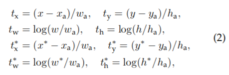 t* : Anchor[i]的Ground Truth的Bounding Box的参数化坐标;
