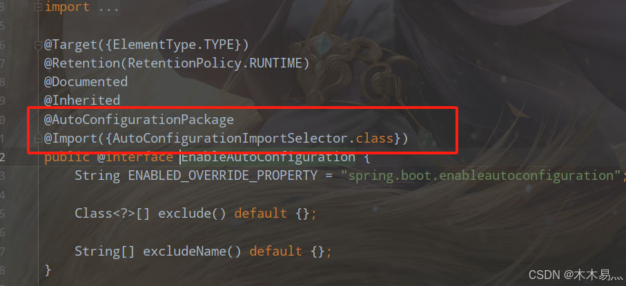 该注解封装的自动装配的原理,点进该注解里面可以看到下面的内容