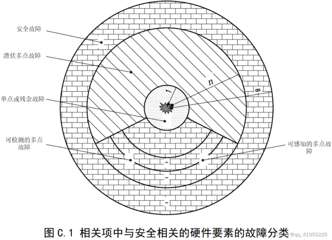 这个度量反映了相关项通过安全机制覆盖、 通过驾驶员在安全目标违背之前识别、 或通过设计手段(主要为安全故障) 实现的对潜伏故障的鲁棒性。这个度量反映了相关项通过安全机制覆盖或通过设计手段( 主要为安全故障) 实现的对单点故障和残余故障的鲁棒性。——距离 n 表示了在同一时刻存在的导致违背一个安全目标的独立故障的数量(n=1 对应单点。——除非在技术安全概念中表明相关, 否则认为距离高于 n=2 的多点故障是安全故障。λ MPF,L,est —— 关于潜伏故障的估算的失效率;