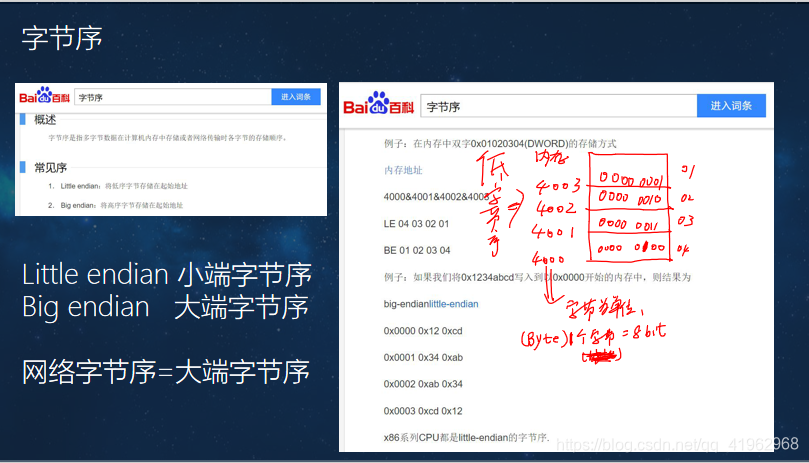 字节序是指多字节数据在计算机内存中存储或者网络传输时各字节的存储顺序。