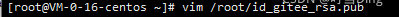 5、把如上密钥复制出来粘贴在你的gitee上,使用 :wq 去关闭vim编辑器