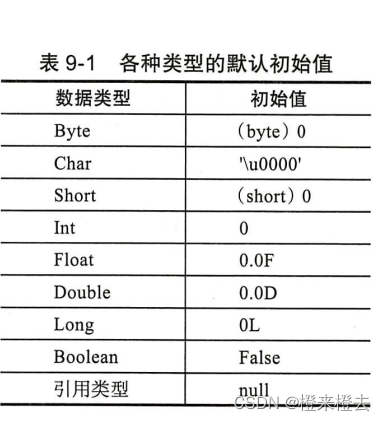 在准备阶段中会为class文件中的属性字段赋予初始值(不是最终结果),各数据类型可以参考下表: