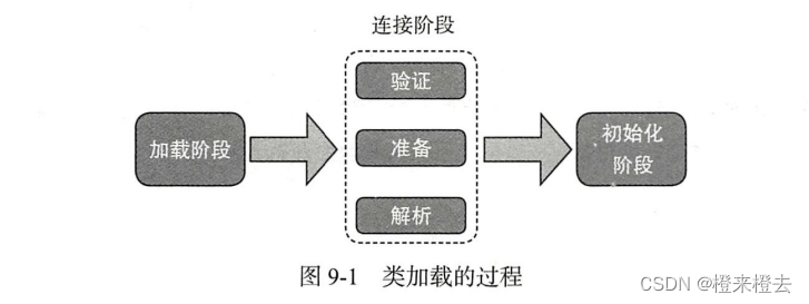 类的加载过程大致分为三种:加载阶段、连接阶段、初始化阶段