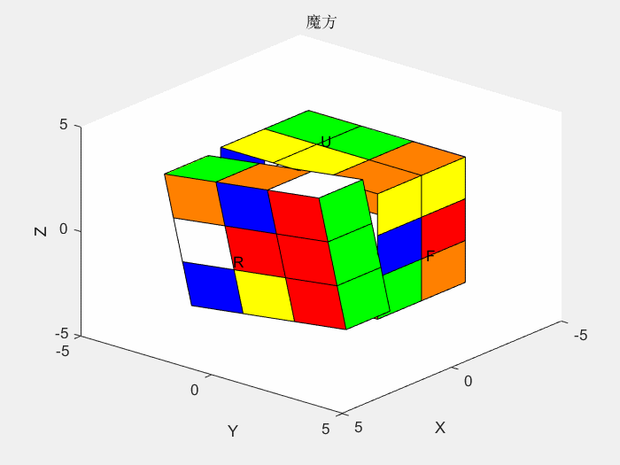 要注意坐标矩阵V与旋转矩阵R相乘后可能出现分数,就不能用某个轴坐标等于3或-3判断色块所在面,需使用四舍五入取整函数对坐标矩阵取整,应该在最后一轮设置坐标属性时取整,因为旋转90°分为9次每次旋转10°实现动态旋转,应该在第9次时对坐标矩阵四舍五入取整,取整早了魔方会缩小。