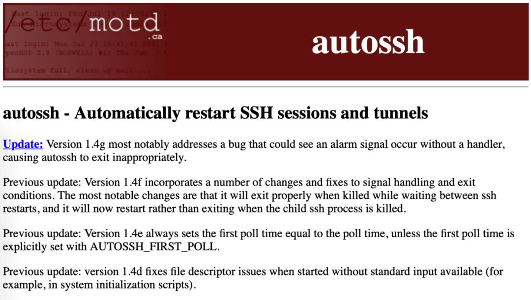 工具主页 :http://www.harding.motd.ca/autossh/