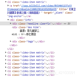 根据上述结果我们可以看出所有的视频都是一个列表的列表项,我们将右图展开如下