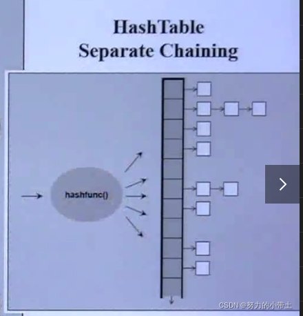 即每一个竖直的蓝色小框框都代表一个链表,可以连接许多元素。但是每个蓝色小框中的链表不能太长,太长不方便查找。