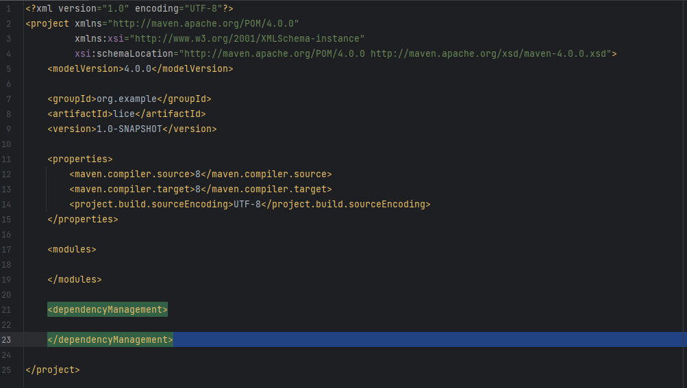 在父项目下新建一个模块,这次选择spring项目,修改该模块的标签内容,原本是spring的坐标,这里需要修改为父项目的坐标,接着在标签引入该模块需要的依赖,不需要指定版本号,因为之前已经指定好了,子模块会向上找版本。在父项目新建一个专用于依赖版本控制的一个maven模块,删除多余文件和目录,保留pom文件,在标签引入模块共用的依赖版本,如spring-boot,mybatis等,为其他子模块定好依赖版本。将spring项目的配置文件改为yml格式,看起来更直观,引入数据源参数,填入你的数据库信息。...