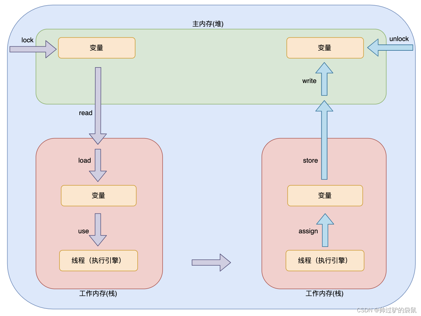读取,把变量从主内存读取到工作内存