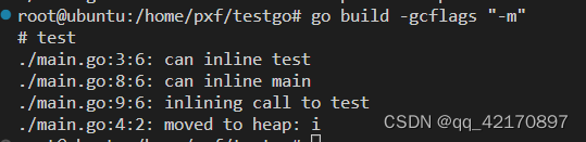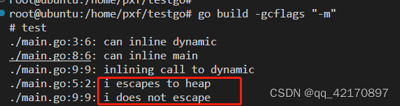 在go build 时加上-gcflags "-m",就会对所有函数中的所有对象进行内存逃逸分析,分析结果直接显示在终端上。