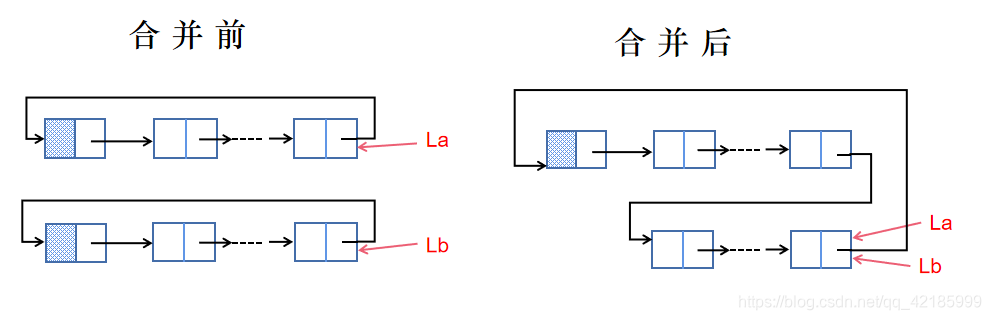 void MergeList_CL(LinkList *La, LinkList Lb)