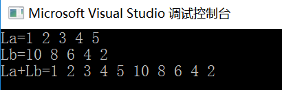 printf("La+Lb="); /* 输出合并后的链表的内容 */