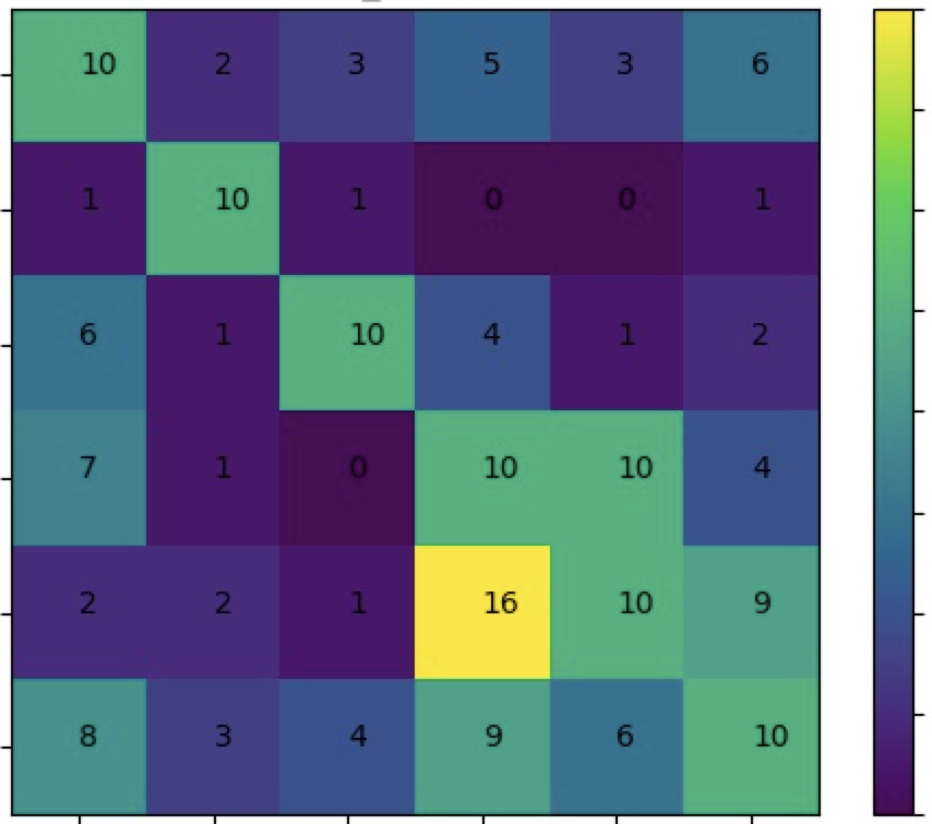 from sklearn.metrics import confusion_matrix, f1_score, multilabel_confusion_matrixfrom operator import truedivimport numpy import matplotlib.pyplot as plt if __name__ == "__main__": confusion = numpy.array(( [0, 2, 3 , 5, 3, 6], ..