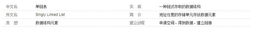 单链表是一种链式存取的数据结构,用一组地址任意的存储单元存放线性表中的数据元素。链表中的数据是以结点来表示的,每个结点的构成:元素(数据元素的映象) + 指针(指示后继元素存储位置),元素就是存储数据的存储单元,指针就是连接每个结点的地址数据。