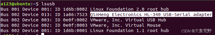 总线 001 设备 001:这表示这是连接到第一个 USB 总线的第一个设备。