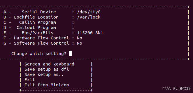 在首次使用Minicom或需要更改配置时,可以通过以下步骤进行配置: