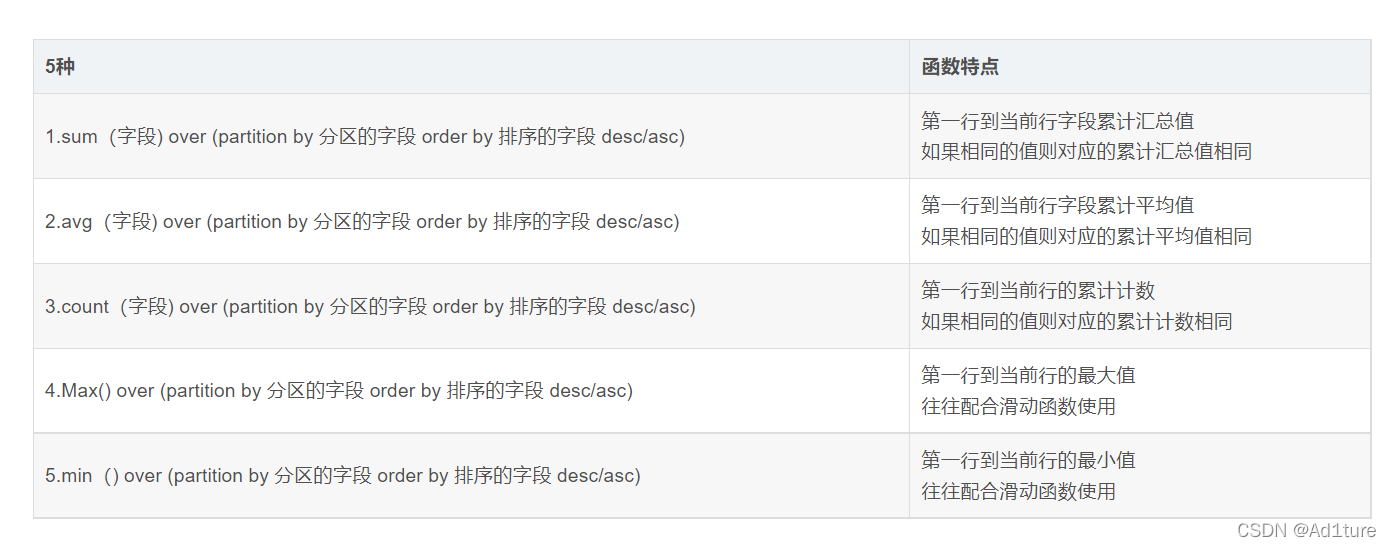 10. sum、avg、count、max、min窗口函数