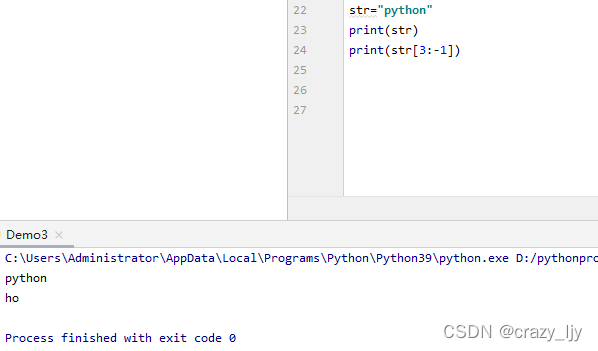 索引3为字母h,索引-1为字母n,str[ 3:-1 ]的结果是ho